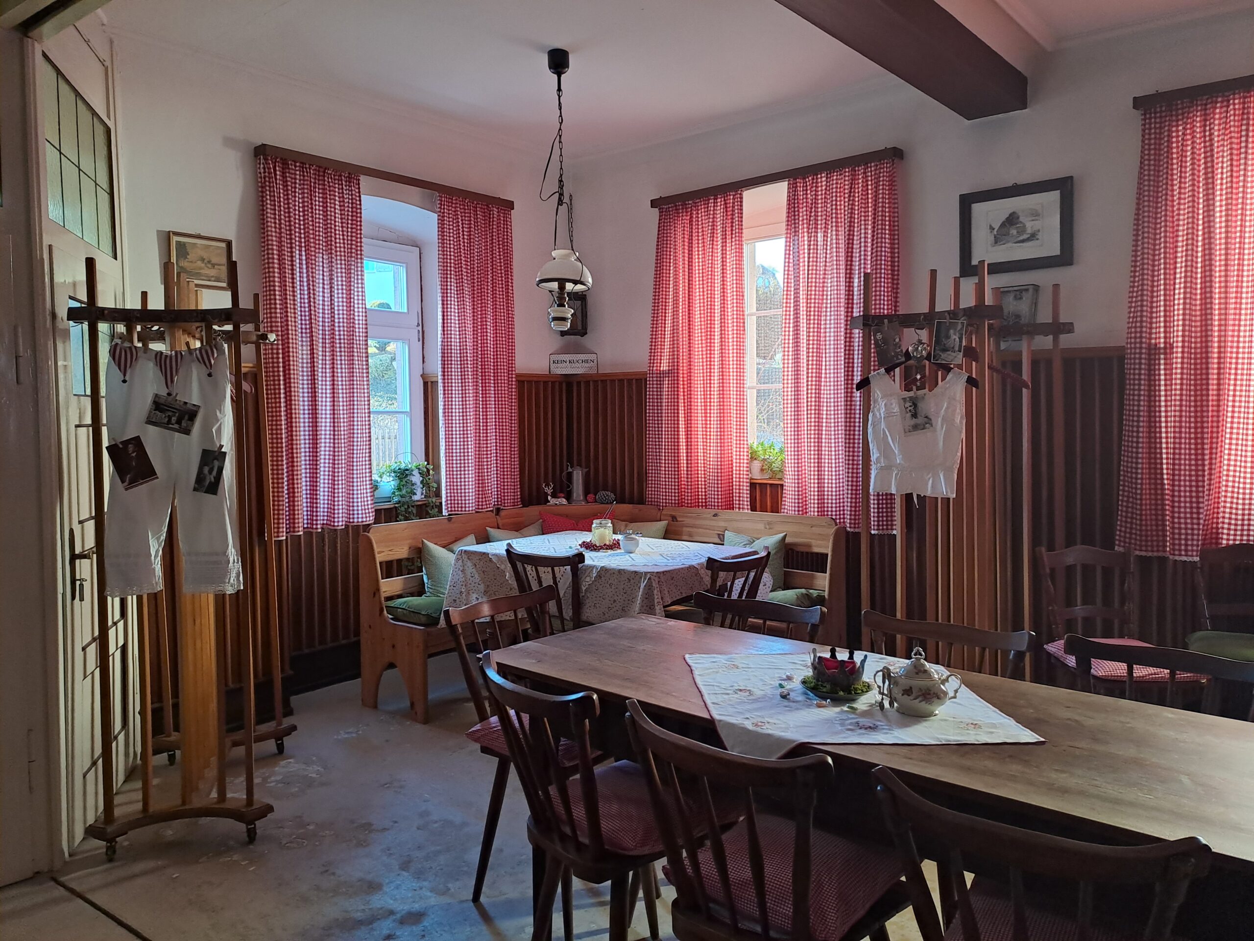 Glücklicherweise wurde der Gastraum von unschönen Modernisierungswellen verschont, wodurch er seinen Charakter über die Zeit hinweg beibehalten hat. Hier fühlt man sich zurückversetzt in die Vergangenheit und genießt das gesellige Zusammensein in diesem traditionsreichen Hause.